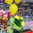 Желтые одноголовые хризантемы составляют центр жизнерадостного букета. Выразительности цветам придают солидаго, салал или рускус. Упакованная в зеленую сетку композиция наверняка порадует получателя в день его рождения. Будьте убеждены, что любой член семьи не устроит перед роскошью букета, будь то Ваши родители или любимые бабушка с дедушкой. Коллега по работе также оценит Ваш безупречный вкус и будет радоваться получению столь шикарного букета. Композиция выразит глубокие чувства благодарности и уважения за Вас.